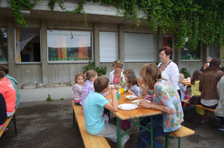 Am nächsten Morgen, waren die Ersten schon um 6:45 Uhr wach. Alle haben noch etwas müde ausgesehen, was jedoch schnell vorbei war. Wir haben alle zusammen die Schlafsachen wieder zusammen gepackt und die Kinder durften sich umziehen. Dann wurde erst einmal etwas kleines Frühstück gegessen, danach durften alle Kinder zusammen auf den Kindergartenspielplatz gehen, um sich auszutoben, bevor sie zwar etwas müde aber glücklich von ihren Eltern in Empfang genommen wurden. Als Abschluss fand um 9.00 Uhr ein Brunch für alle YoYo- Kinder und ihre Familie statt. Auch dies war ein tolles Ereignis, hier waren doch insgesammt bis zu 60 Kinder und Erwachsene anwesend. Als Krönung trugen die Kinder das neu gelernte Dschungellied vor.